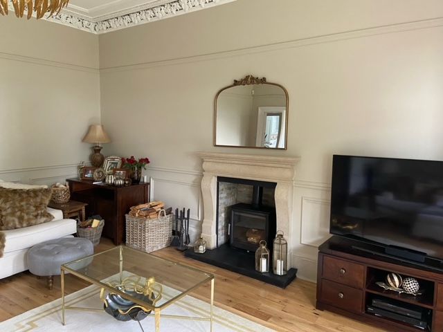 Our Midi Floating Mantel in Bath Stone/Limestone finish. Perfect for Kitchens too!